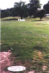 Hole # 6 is the longest hole on the course. A gradual uphill slope will fool you and drop your shots short. You are also usually facing the prevailing wind here. The 4th fairway lines the left and the road (US 221 - Brambleton Ave.) runs down the right side. The fairway is basically wide open, but the Pole Hole is placed between two tree trunks that run in line with the fairway, so you need a good curve second to get at the hole.