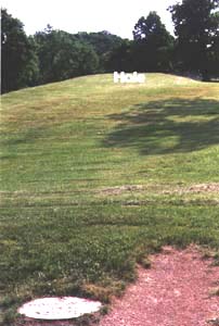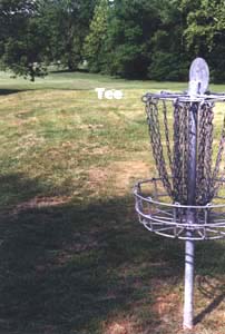 Hole # 7 only plays 326 feet, but the Pole Hole is about 40 feet above the tee, so most tee shots fall far shorter than you would expect. The fairway drops off to the left and right. The left falls toward the swampy area near the 2nd fairway, while the right falls toward a very dense brushy drainage area. Your best bet is to stay short and accurate than to go long and fall off the hill to the left or right. If you stay down the center, you will usually score well on this hole.